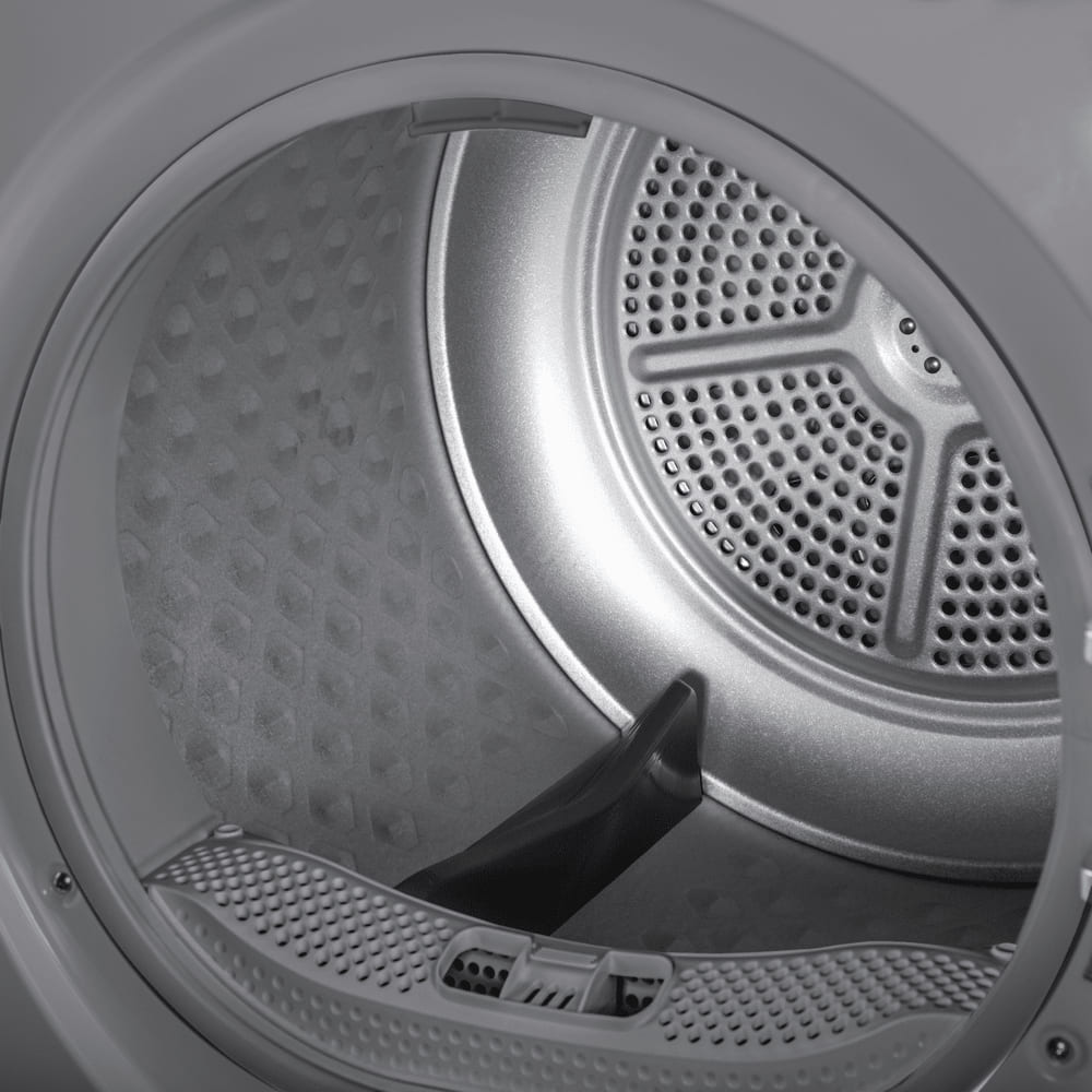 Тип сушки белья в данной модели — тепловой насос. Благодаря этому воздух поступает в барабан уже теплым, что ускоряет работу.