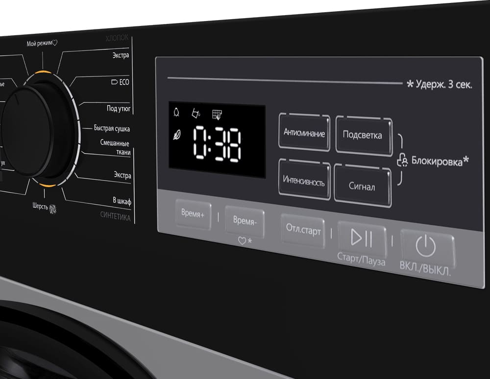 Группа экспресс-режимов позволяет быстро привести в порядок повседневные вещи, не дожидаясь полной загрузки машины. Занимает 15-30 минут и экономит электроэнергию.
