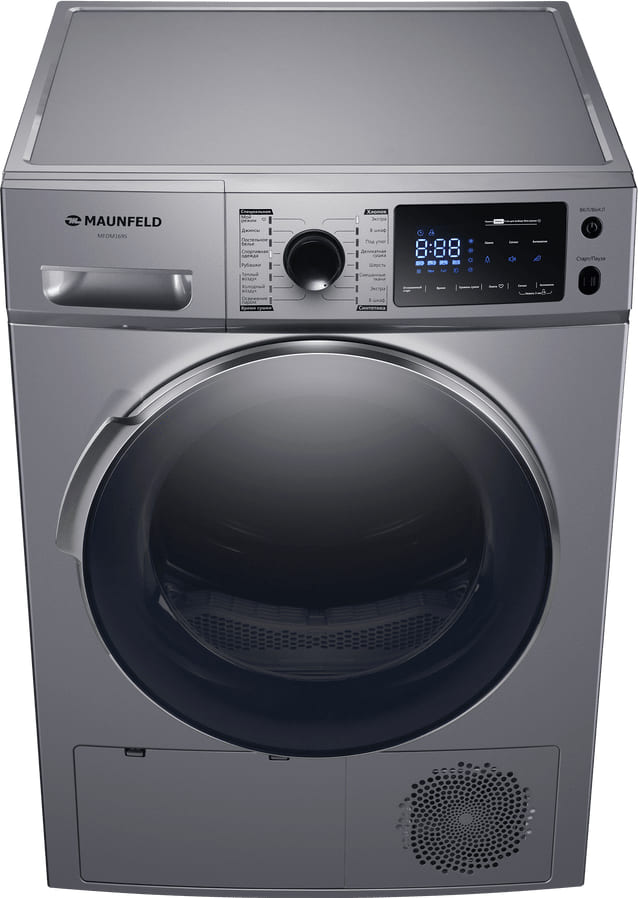 Сушильная машина Maunfeld предназначена для домашнего использования, поэтому имеет стандартные габариты и большое разнообразие программ. Так как она устанавливается отдельно, нужно заранее найти достаточно места в помещении. Особенности, на которые нужно обратить внимание при размещении: возможность установки в колонну. Колонна — это название для совместной установки со стиральной машиной друг на друга, обычно для этого нужен специальный крепежный элемент.