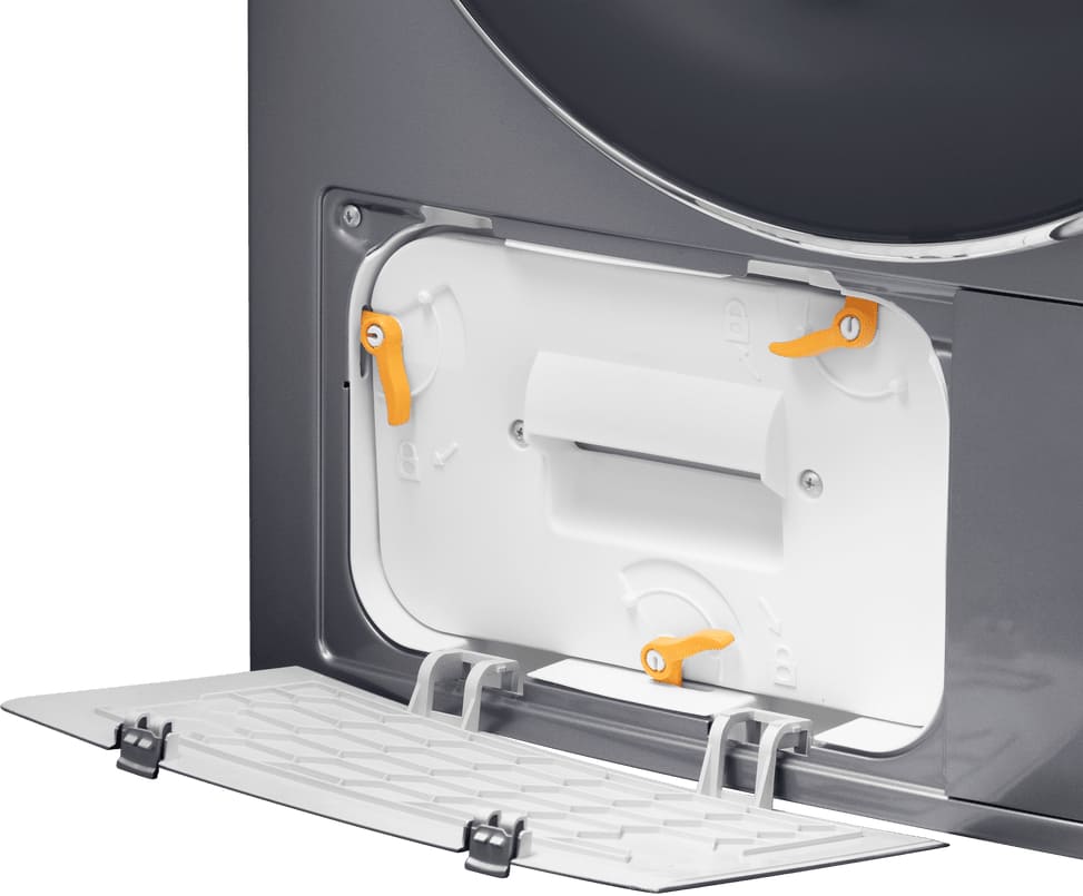 Сушильные машины конденсационного типа, как и устройства с тепловым насосом, не требуют присоединения к системе вентиляции и подключаются только к электросети. Конденсат, который удаляется из загруженного белья, стекает в специальный контейнер. Он расположен так, чтобы его извлечение было максимально удобным — например, в верхней части корпуса, там, где у стиральных машин находится лоток для порошка. Опустошать этот контейнер необходимо вручную — как правило, после завершения каждого цикла работы. О необходимости слива конденсата предупреждает специальный индикатор на панели управления.