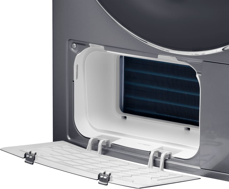Тип сушки белья в данной модели — тепловой насос. Благодаря этому воздух поступает в барабан уже теплым, что ускоряет работу. Специальный компрессор Heat Pump помогает вам экономить электроэнергию.