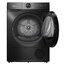 В барабан единовременно можно загрузить 9 кг. Его реверсивное вращение предотвращает сбивание вещей в ком и образование дисбаланса. Подсветка — не только красивая, но и функциональная деталь, так как дает хороший обзор, как проходит сушка. Цвет корпуса — темное серебро.