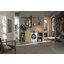 Модель имеет стандартные габариты: высота составляет 85 см, ширина — 59.6 см, глубина — 64.3 см. Универсальный дизайн, в котором сочетаются белый и черный цвета, удачно впишется в любой интерьер. Допускается максимальная загрузка 9 кг белья. Дверца открывается на 155°, что облегчает загрузку объемных вещей.