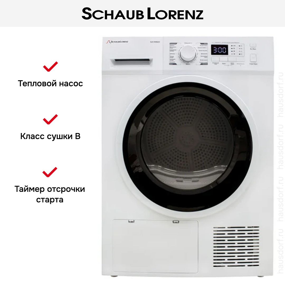 Сушильная машина Schaub Lorenz SLR-HW820 представляет собой современное устройство для дома, сочетающее практичный дизайн и продуманный набор функций.
