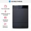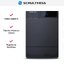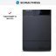 Выглядит как сдержанный и внушительный прибор: прямоугольная дверца и наклонная панель управления подчёркивают строгие линии корпуса. Цвет оформления — черного цвета, включая панель и дверцу люка, что придаёт агрегату монолитный и цельный облик. Диаметр люка 310 мм и подсветка барабана делают загрузку удобной даже при слабом освещении.