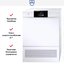 Управление осуществляется с помощью электронной панели с сенсорными кнопками. На LED дисплее отображается время до окончания программы. Клавиши специальных функций позволяют сохранить программу в память устройства. Оно оснащено специальной корзиной для сушки шерсти и множеством дополнительных параметров, включая защиту от случайного включения, выбор языка на дисплее и возможность подключения к Wi-Fi. Среднегодовое энергопотребление составляет 203 кВт-ч/год, уровень шума — 63 дБ.