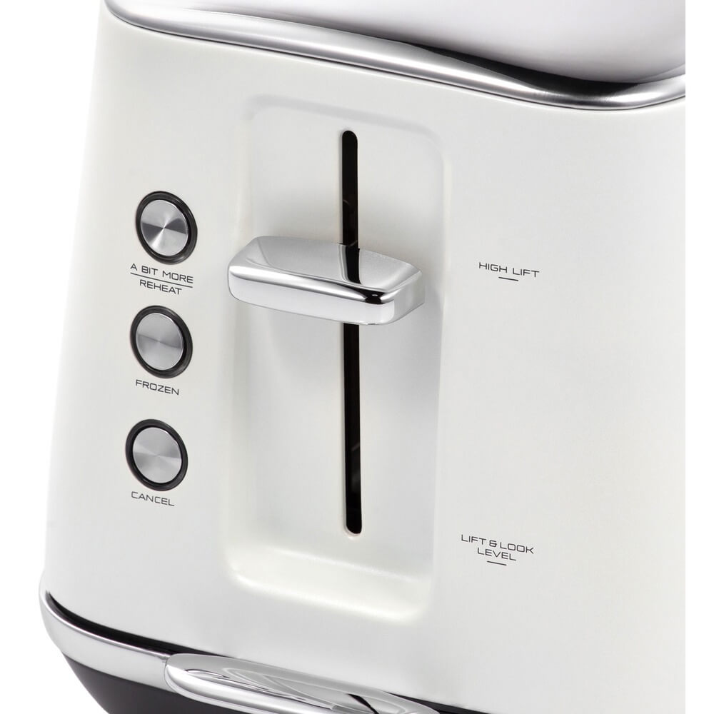 Конструкция предусматривает регулировку степени прожарки, функцию разморозки и подогрева, а также автоматическое отключение по завершении цикла. Удобный подъёмник позволяет извлекать даже небольшие кусочки без риска обжечься. Съёмный поддон для крошек упрощает уход и поддержание гигиены.