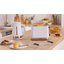 Прибор рассчитан на комфортную ежедневную эксплуатацию: две широкие секции вмещают до двух ломтиков одновременно, а автоматическое центрирование обеспечивает равномерное подрумянивание по всей поверхности. Семь уровней поджаривания дают точный контроль за степенью хрустящей корочки — от легкого золотистого оттенка до более насыщенной корочки для ценителей ярко выраженного вкуса. Механическое управление объединяет поворотный регулятор и кнопочные переключатели, что делает настройку интуитивно понятной и надежной, а наличие бесступенчатого терморегулятора обеспечивает плавную регулировку в пределах заданных уровней.