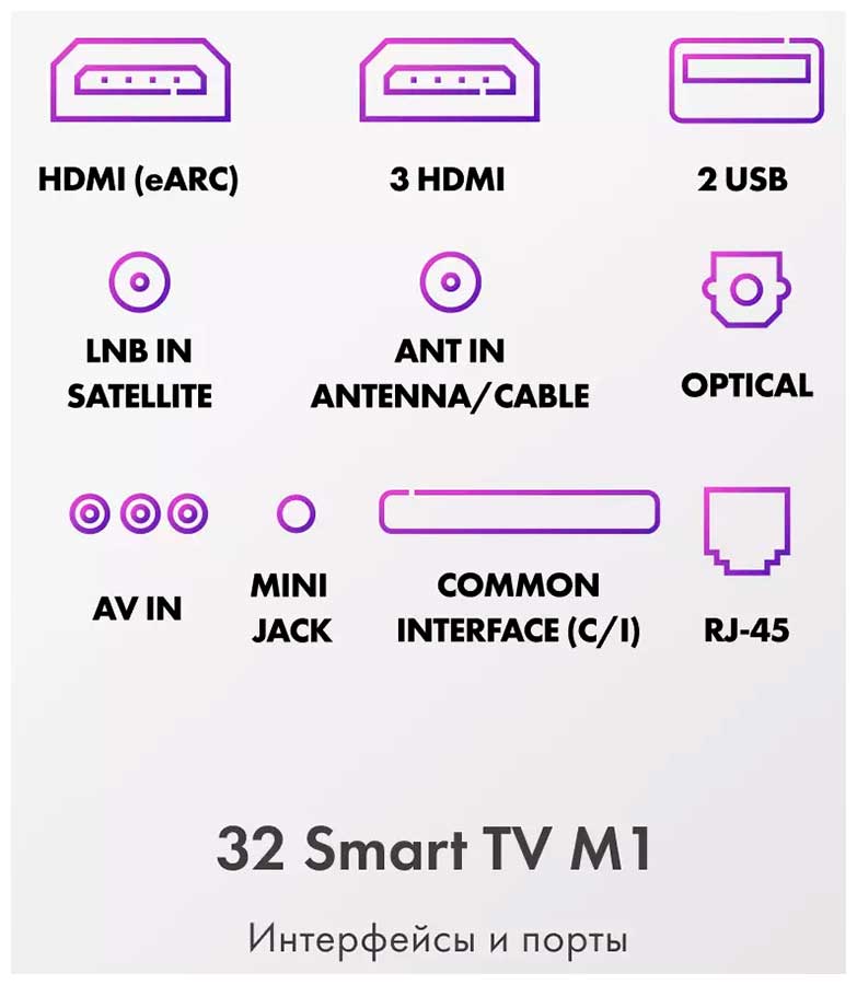 Тип экрана: LED. Диагональ, ": 32. Цвет: черный. Разрешение, px: 1366х768. Формат: 16:9.