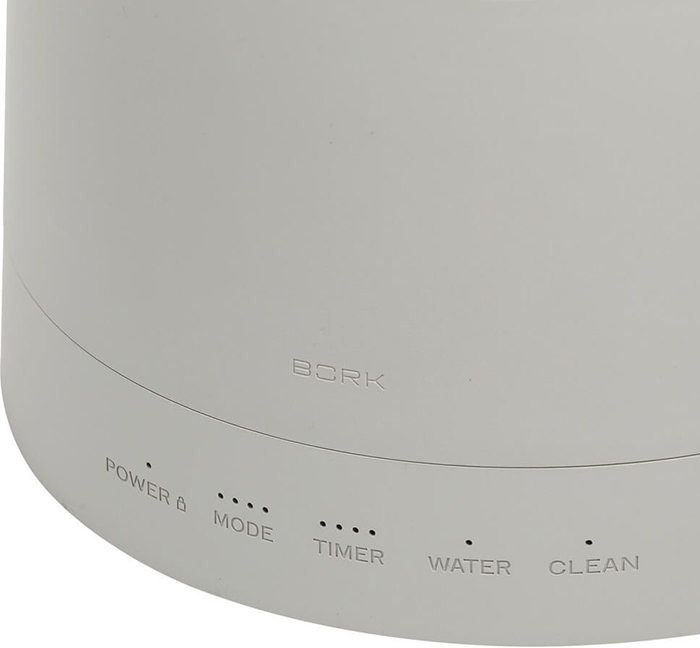 Электронное управление работой увлажнителя воздуха Bork позволяет регулировать параметры одним нажатием кнопки, а информативный дисплей демонстрирует текущие характеристики работы. Отсутствие выступающих регуляторов на корпусе создает лаконичный дизайн.
