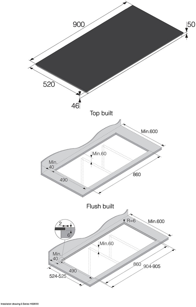 Электрические и индукционные варочные панели из стали, эмали и стеклокерамики имеют толщину от 4 до 5,5 cм, но выглядят более низкими, так как на них отсутствуют выступающие горелки. Как правило, подробные требования к толщине столешницы для установки приводятся в руководстве пользователя.