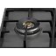 Варочная панель в черном матовом дизайне с фурнитурой в цвете «хром». На поверхности расположено 5 латунных горелок разного диаметра, с мощностью от 0,48 до 5 кВт. Крупная конфорка WOK находится слева, ручка управления ею также вынесена отдельно. Все переключатели на переднем крае, вы можете включать газ одним нажатием благодаря функции автоподжига.