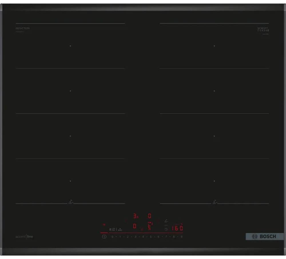 Индукционная варочная панель BOSCH PXX695FC5E — это воплощение инноваций и элегантности из премиальной линейки Serie | 6, созданное для требовательных пользователей, ценящих точность, комфорт и стиль. Модель выполнена в классическом чёрном цвете и дополнена аккуратной рамкой, подчёркивающей геометрию поверхности и облегчающей интеграцию в кухонную столешницу. Его габариты — 5,1 × 60,6 × 52,7 см — позволяют легко встроить устройство в стандартную нишу размером 56 × 49 см, обеспечив плотную и надёжную посадку без зазоров.