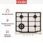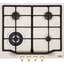 Выбор газовой варочной панели чаще всего обусловлен тем, что в частный дом или квартиру проведен именно газ в качестве обогрева. Работать с этой моделью довольно просто, так как мощность нагрева видна невооруженным взглядом — по силе огня в горелке. Количество конфорок в этой модели: 4. Горелки с тройной короной имеют несколько ступеней нагрева — в зависимости от них образуется несколько кругов пламени.