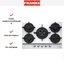 Выбор газовой варочной панели чаще всего обусловлен тем, что в частный дом или квартиру проведен именно газ в качестве обогрева. Работать с этой моделью довольно просто, так как мощность нагрева видна невооруженным взглядом — по силе огня в горелке. Количество конфорок в этой модели: 5. Горелки с тройной короной имеют несколько ступеней нагрева — в зависимости от них образуется несколько кругов пламени.