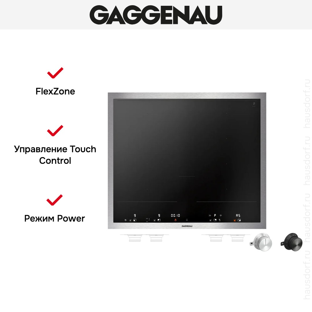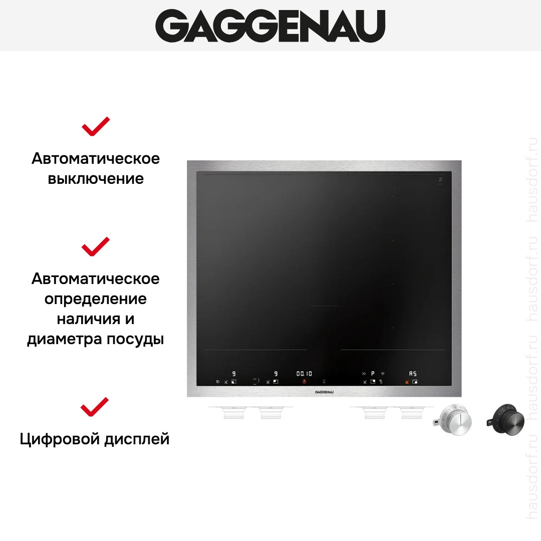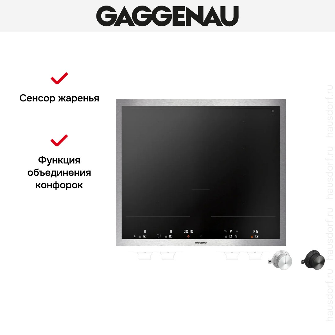 Модель Гаггенау VI462115 входит в дизайн-линейку: 400 series Vario. Цвет — черный. Благодаря рамке она отделена от рабочей зоны и прочнее закреплена на столешнице. Материал самой поверхности: стеклокерамика. Управление этой моделью электронное. Для переключения уровней нагрева, выбора функций используются следующие переключатели: сенсорные/TouchControl, поворотные переключатели с подсветкой. Продвинутая система контроля за прибором делают его современным и отвечающим на главные запросы покупателя.