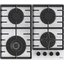 Выбор газовой варочной панели чаще всего обусловлен тем, что в частный дом или квартиру проведен именно газ в качестве обогрева. Работать с этой моделью довольно просто, так как мощность нагрева видна невооруженным взглядом — по силе огня в горелке. Количество конфорок в этой модели: 4. Горелки с двойной короной позволяют увеличивать мощность нагрева в зависимости от диаметра посуды.