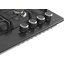 Панель оснащена прочными съемными чугунными решетками, устойчивыми к высоким температурам и механическим воздействиям. Они надежно фиксируют посуду и легко снимаются для очистки. Управление осуществляется механическим способом с фронтальным расположением поворотных переключателей, что обеспечивает интуитивно понятную и точную регулировку интенсивности пламени. Автоматический электроподжиг срабатывает при повороте ручки, исключая необходимость использования спичек или зажигалок и повышая безопасность использования.