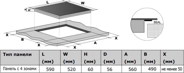 Глубина варочной панели представляет собой расстояние от ближайшей к пользователю ее точки до самой дальней. В первую очередь глубина определяется соответствующими размерами столешницы, куда варочная панель будет встроена, и уже во вторую — количеством и расположением конфорок.