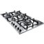 Выбор газовой варочной панели чаще всего обусловлен тем, что в частный дом или квартиру проведен именно газ в качестве обогрева. Работать с этой моделью довольно просто, так как мощность нагрева видна невооруженным взглядом — по силе огня в горелке. Количество конфорок в этой модели: 5. Горелки с тройной короной имеют несколько ступеней нагрева — в зависимости от них образуется несколько кругов пламени.