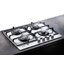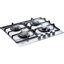 Газовая панель шириной 58 см укомплектована четырьмя конфорками различной мощности. Расположенная слева в первом ряду экспресс-конфорка позволит быстро добиться требуемой температуры. Панель управления в целях безопасности вынесена вправо, на ней расположены четыре механических поворотных переключателя для бесступенчатой регулировки интенсивности пламени. Переключатели изготовлены из металла с эффектом нержавеющей стали, они не нагреваются, даже если конфорки включены. Для установки кофейника на экономичную конфорку малого диаметра предусмотрен специальный адаптер. Массивные составные чугунные решетки очень устойчивы и позволяют размещать посуду по усмотрению пользователя. Их можно снять для всесторонней очистки. Cистема безопасности «Газ-контроль» автоматически прекратит подачу газа, если пламя по какой-либо причине погаснет. Панель можно использовать и без централизованного газоснабжения: в комплект входят также форсунки (жиклеры) для подключения к баллонному газу.
