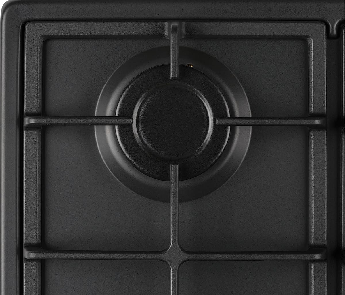 Лаконичный антрацитовый дизайн с прочными чугунными решётками и эмалированными панелями придаёт модели солидный и современный вид. Подставка под WOK, входящая в комплект, обеспечивает устойчивость глубокой посуды и равномерное распределение пламени, что особенно важно при жарке, тушении или быстрой обжарке на сильном огне.