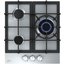 Выбор газовой варочной панели чаще всего обусловлен тем, что в частный дом или квартиру проведен именно газ в качестве обогрева. Работать с этой моделью довольно просто, так как мощность нагрева видна невооруженным взглядом — по силе огня в горелке. Количество конфорок в этой модели: 3.