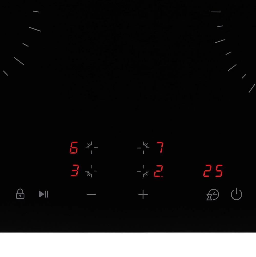Таймер варочной панели — это устройство, позволяющее задавать время приготовления пищи. По истечении указанного времени таймер подает звуковой сигнал о необходимости отключения конфорки или выключает ее самостоятельно в зависимости от модели. С помощью этой опции можно запрограммировать отключение любой конфорки или всех конфорок одновременно.