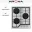 Выбор газовой варочной панели чаще всего обусловлен тем, что в частный дом или квартиру проведен именно газ в качестве обогрева. Работать с этой моделью довольно просто, так как мощность нагрева видна невооруженным взглядом — по силе огня в горелке. Количество конфорок в этой модели: 3.