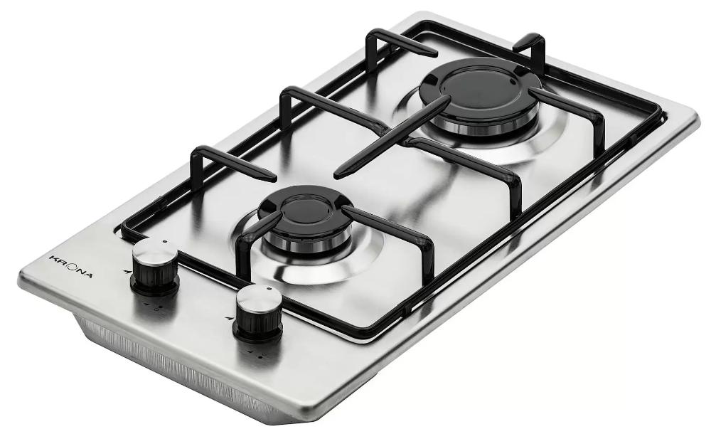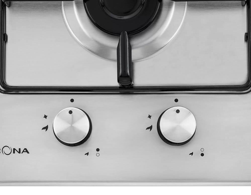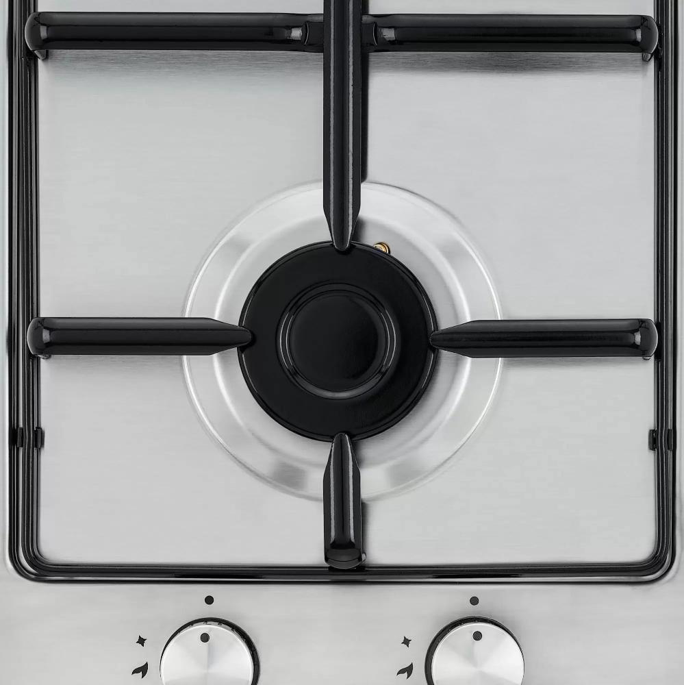 Выбор газовой варочной панели чаще всего обусловлен тем, что в частный дом или квартиру проведен именно газ в качестве обогрева. Работать с этой моделью довольно просто, так как мощность нагрева видна невооруженным взглядом — по силе огня в горелке. Количество конфорок в этой модели: 2.