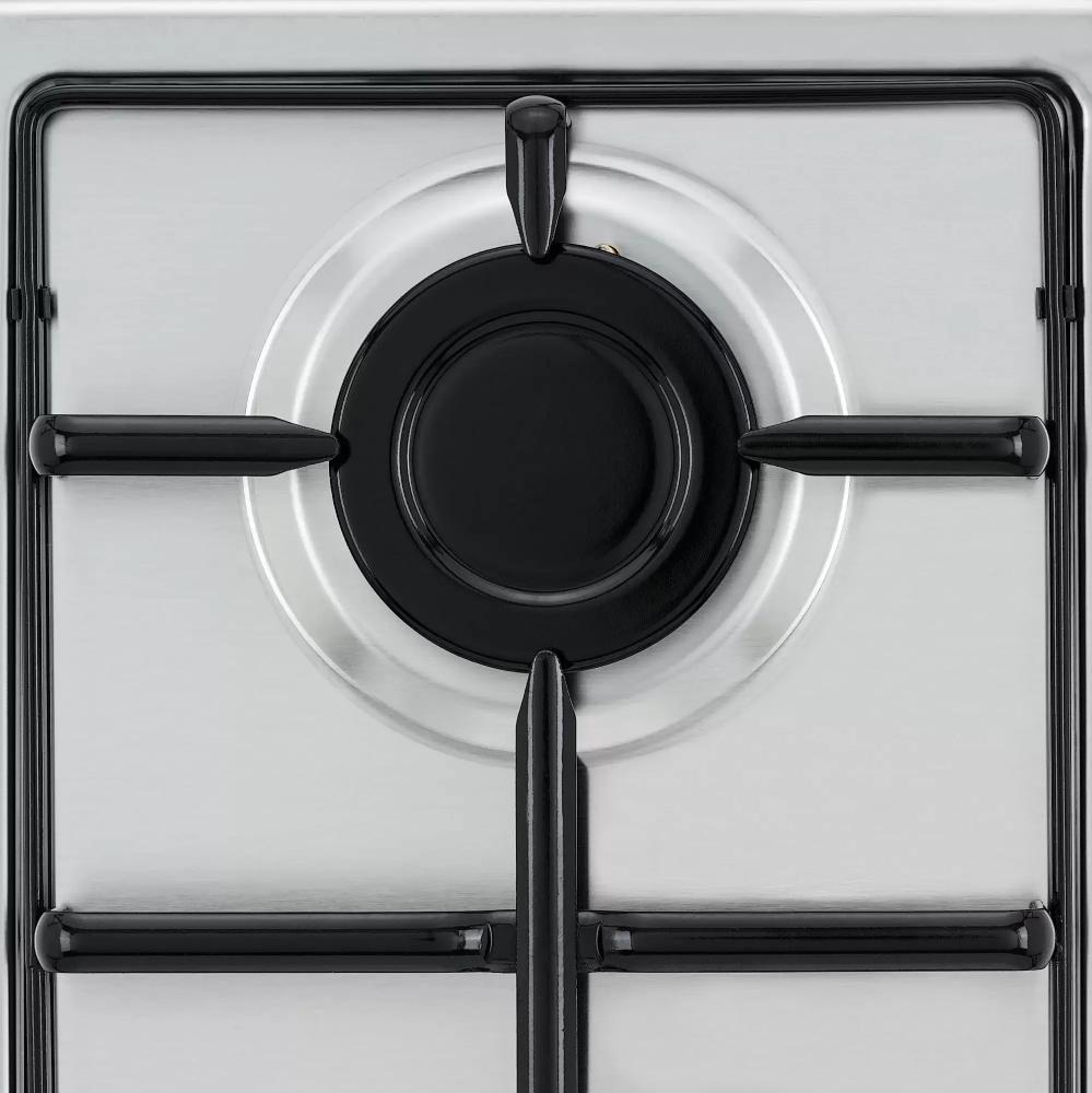 Цвет — нержавеющая сталь. Открытый огонь не страшен ни вашей посуде, ни вам, так как горелки надежно закрыты решетками. Материал самой поверхности: нержавеющая сталь. Управление этой моделью механическое. Для переключения уровней нагрева, выбора функций используются следующие переключатели: поворотные. Простая система контроля за прибором делают его более универсальным, ведь разобраться сможет кто угодно.