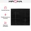 Варочная панель работает на индукционном нагреве — это значит, что повышается температура непосредственно посуды, в которой готовится блюдо. Таким образом промежуточная ступень с предварительным нагревом конфорки пропускается — сокращается время, повышается безопасность. Количество конфорок в этой модели: 4.
