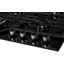 Встраиваемая варочная панель Kuppersberg FG 63 B — модель с четырьмя газовыми конфорками, изготовленная в стиле Hi-Tech. Цветовая гамма практически полностью темная, за исключением небольших металлических элементов стального цвета. Поверхность выполнена из закаленного стекла глубокого глянцевого черного цвета. Завершают ансамбль черные чугунные решетки с матовой зернистой текстурой, контрастирующей с блеском панели. Решетки являются не только удобными подставками под кастрюли и сковороды и защитными элементами, но и сами по себе являются дизайнерской деталью. Четкие горизонтальные линие нарушаются плавными кривыми, переходящими из одного квадрата в другой и перекликающимися по форме с черными конфорками. Благодаря этому создается ощущение цельности, надежности и элегантности. Панель может подойти как футуристическому интерьеру, так и спокойному минимализму.