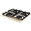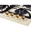Kuppersberg FQ663 C Bronze — бежевая варочная поверхность с бронзовой фурнитурой. Для удобства эксплуатации предусмотрена система автоматического электроподжига, посредством которой каждую конфорку можно активировать одним поворотом ручки-регулятора. Защиту от утечки в случае затухания пламени гарантирует технология газового контроля.