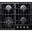Поверхность из закаленного стекла характеризуется высокой прочностью и проста в очистке. Решетки для поддержания посуды выполнены из чугуна. Для изготовления конфорок использована нержавеющая сталь.
