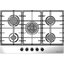 Выбор газовой варочной панели чаще всего обусловлен тем, что в частный дом или квартиру проведен именно газ в качестве обогрева. Работать с этой моделью довольно просто, так как мощность нагрева видна невооруженным взглядом — по силе огня в горелке. Количество конфорок в этой модели: 5.