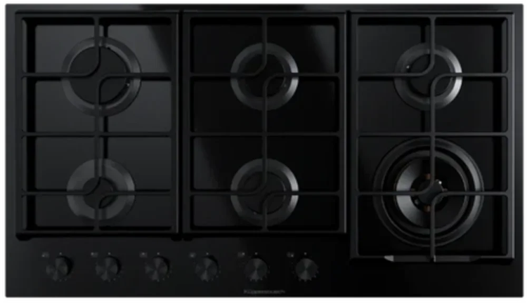 Выбор газовой варочной панели чаще всего обусловлен тем, что в частный дом или квартиру проведен именно газ в качестве обогрева. Работать с этой моделью довольно просто, так как мощность нагрева видна невооруженным взглядом — по силе огня в горелке. Количество конфорок в этой модели: 6.