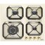Газовая варочная панель с эмалированной поверхностью и чугунными решетками. 4 горелки — одна с повышенной мощностью — работают с электроподжигом. Панель управления с поворотными переключателями расположена в передней части — под маленькой конфоркой. Благодаря этому вы защищены от пламени и случайных брызг.