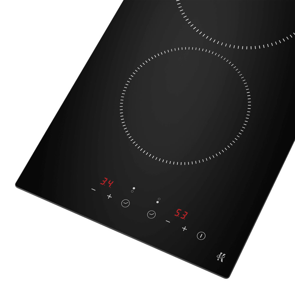 Двухконфорочные панели шириной около 30 см часто можно комбинировать с другими в дизайне «Домино». Такие панели нередко выбирают покупатели, которые пользуются для приготовления пищи другой техникой — мультиварками, духовками, СВЧ-печами. Конфорки при этом могут располагаться как в два ряда, так и в один, а форма панели может быть как привычной прямоугольной, так и овальной или в виде капли.