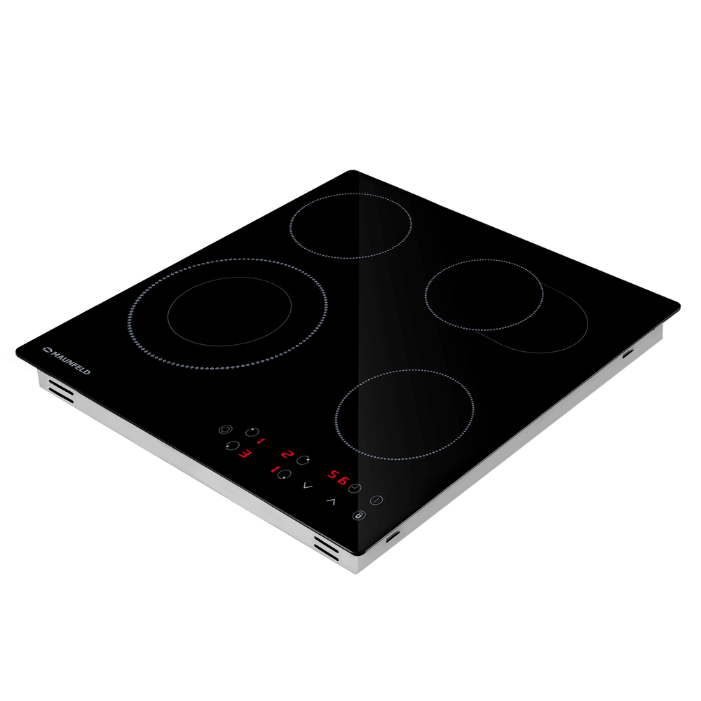Данная варочная панель имеет классический электрический нагрев, при котором сначала раскаляются конфорки (точнее элементы, скрытые под поверхностью), а затем передают это тепло посуде. Разобраться, как с ней работать, просто даже пожилым людям, привыкшим к плитам. Количество конфорок в этой модели: 4.