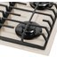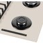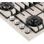 Maunfeld EGHG.64.6CBG/G — независимая газовая варочная панель с четырьмя конфорками. Ширина ее составляет 60 см, так что панель встраивается в стандартную столешницу. Поверхность изготовлена из термостойкого стекла бежевого цвета. Механическая панель управления находится справа в передней части. Слева в первом ряду находится самая большая конфорка SABAF мощностью 2,6 кВт. Регулировка интенсивности пламени производится при помощи поворотных переключателей. Для включения конфорок можно использовать электроподжиг. Подача газа автоматически прерывается, если пламя погаснет.