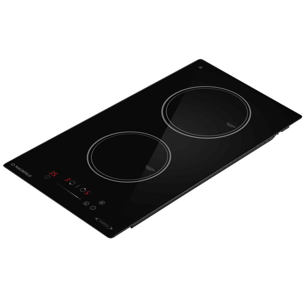 Варочная панель работает на индукционном нагреве — это значит, что повышается температура непосредственно посуды, в которой готовится блюдо. Таким образом промежуточная ступень с предварительным нагревом конфорки пропускается — сокращается время, повышается безопасность. Количество конфорок в этой модели: 2.