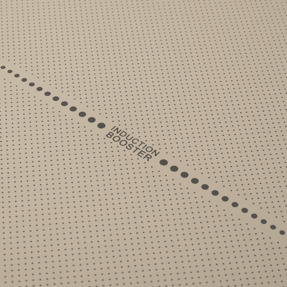 Специальная интеллектуальная система определяет, какие именно катушки располагаются под дном посуды, и подключает именно их. Таким образом для готовки можно использовать посуду не только разного диаметра, но и разной формы. Экономия электроэнергии при этом значительна, ведь конфорка никогда не будет работать при отсутствии посуды, а та часть ее, которая не занята посудой, также останется холодной. Посуду можно устанавливать свободно, произвольно сдвигая ее в пределах зоны нагрева.