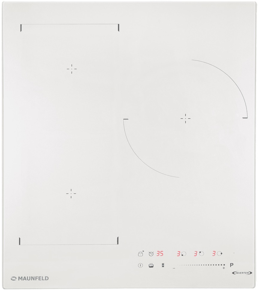 Варочная панель работает на индукционном нагреве — это значит, что повышается температура непосредственно посуды, в которой готовится блюдо. Таким образом промежуточная ступень с предварительным нагревом конфорки пропускается — сокращается время, повышается безопасность. Количество конфорок в этой модели: 3.