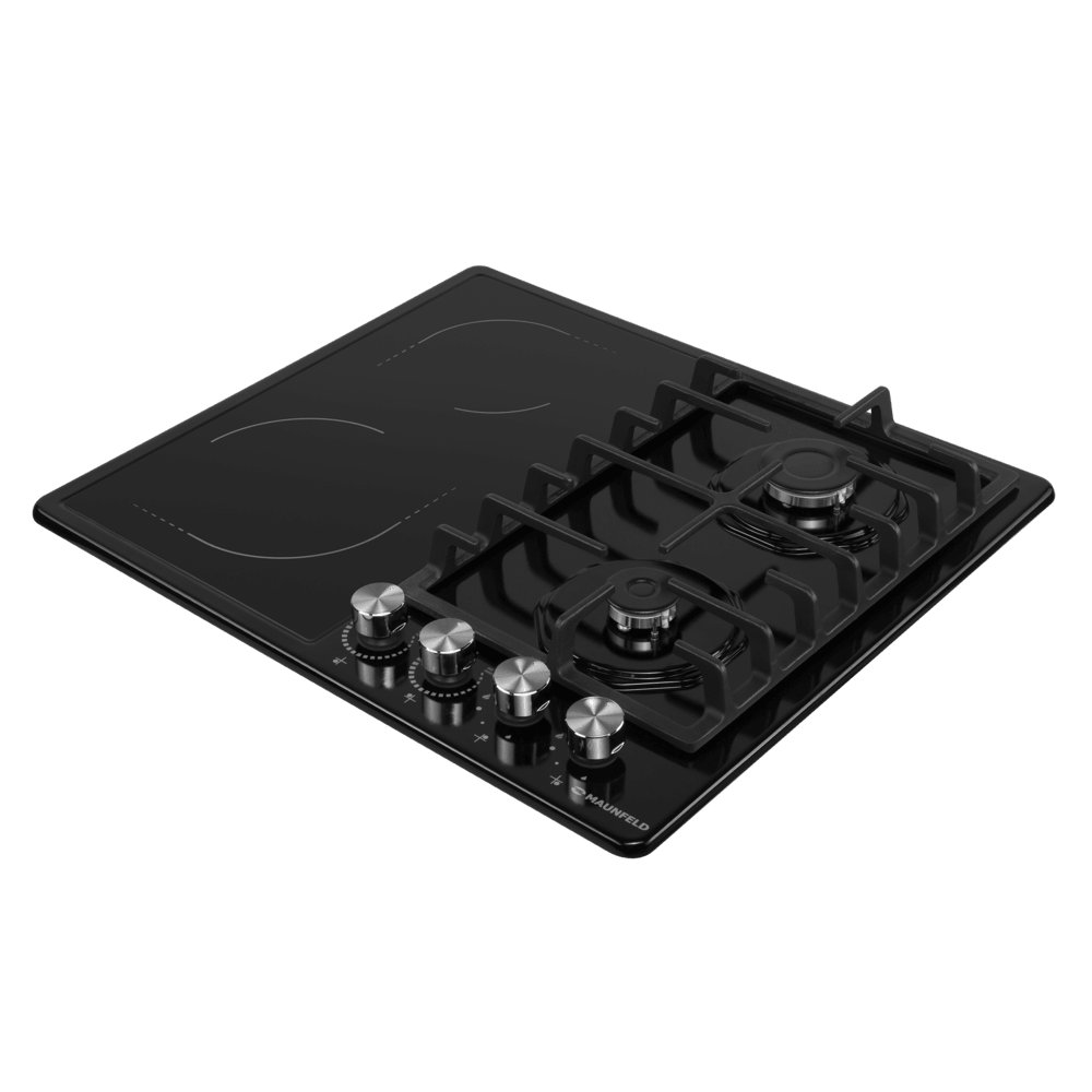 Варочная панель Маунфилд EEHE.642VC.3CB/KG работает с несколькими видами нагрева — благодаря такой комбинации можно экономить энергию, выбирать более подходящие конфорки для тех блюд, которые хочется приготовить сейчас. Количество конфорок в этой модели: 4.