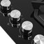 Слева на фронтальной части варочной панели расположены механические поворотные переключатели с не нагревающимися рукоятками из термостойкого пластика. Такое расположение также способствует безопасности использования. Плавная регулировка позволяет выбирать необходимый уровень нагрева от минимального до максимального как для газовых, так и для электрических конфорок.