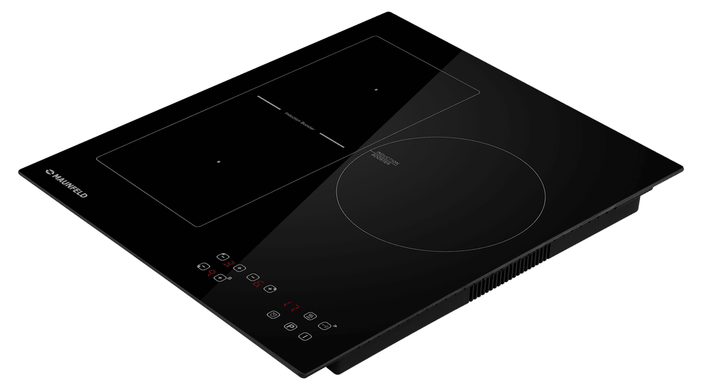 Варочная панель работает на индукционном нагреве — это значит, что повышается температура непосредственно посуды, в которой готовится блюдо. Таким образом промежуточная ступень с предварительным нагревом конфорки пропускается — сокращается время, повышается безопасность. Количество конфорок в этой модели: 3.