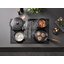 Варочная панель работает на индукционном нагреве — это значит, что повышается температура непосредственно посуды, в которой готовится блюдо. Таким образом промежуточная ступень с предварительным нагревом конфорки пропускается — сокращается время, повышается безопасность. Количество конфорок в этой модели: 4.