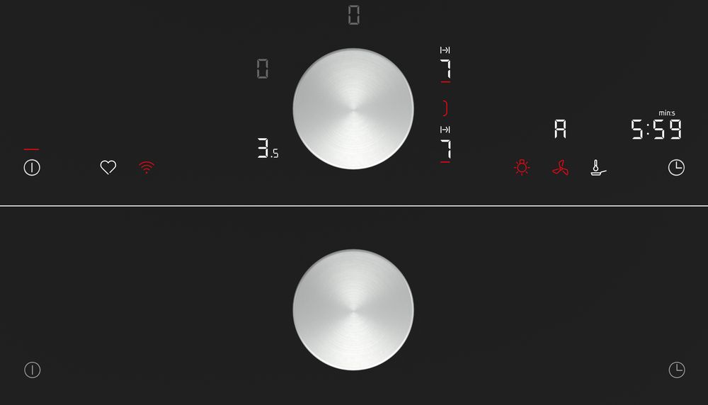 Магнитный съемный переключатель, который нужно перемещать по панели управления в сторону нужной конфорки. На дисплее отображается, с какой зоной нагрева вы сейчас работаете. Чтобы изменить температуру, нужно покрутить переключатель влево или вправо.