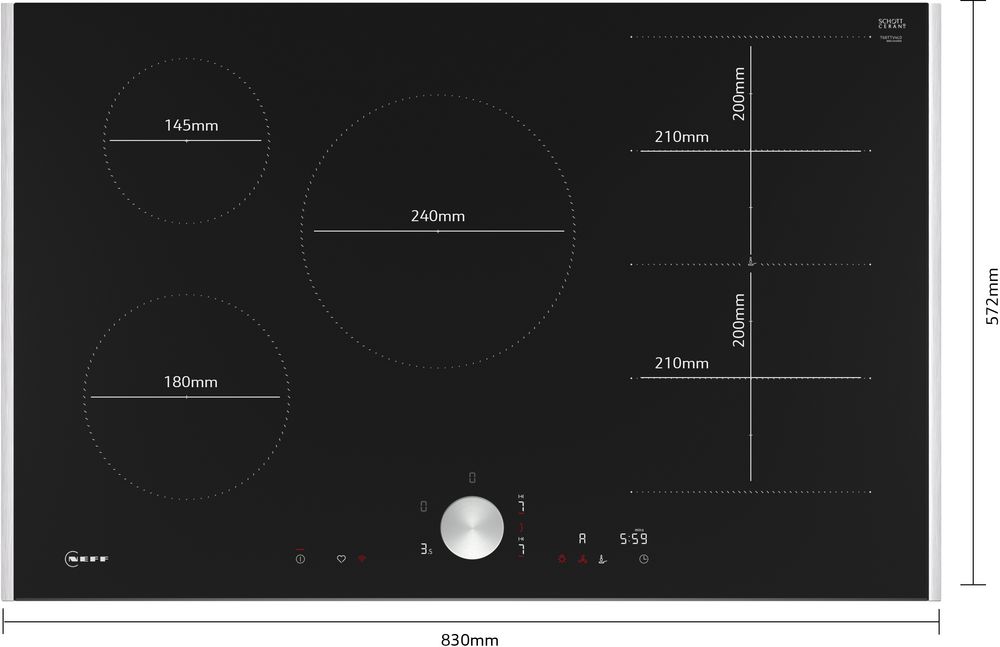 Ширина варочной панели — одна из важнейших ее характеристик, которая зависит главным образом от количества и порядка размещения конфорок. Тип нагрева на нее практически не влияет. Как правило, конфорки размещаются в два ряда, причем более мощные располагаются во втором ряду. Производители выпускают также модели с одним рядом конфорок — например, для установки на кухонном острове, — а также с расположением зон нагрева в форме ромба или трапеции.